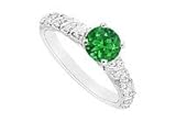 | Emerald and Diamond Engagement Ring : 14K White Gold - 0.75 CT TGW Size 15