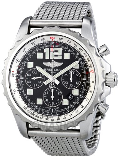 #The Breitling Men's A2336035/BA68SS CHRONOSPACE AUTO Black Dial Watch is a sleek and sophisticated timepiece built for success. Featuring a black analog chronograph dial and a silver stainless steel mesh band, don't miss out on your opportunity to own a Breitling.