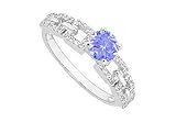 | Tanzanite and Diamond Engagement Ring : 14K White Gold - 0.75 CT TGW Size 8